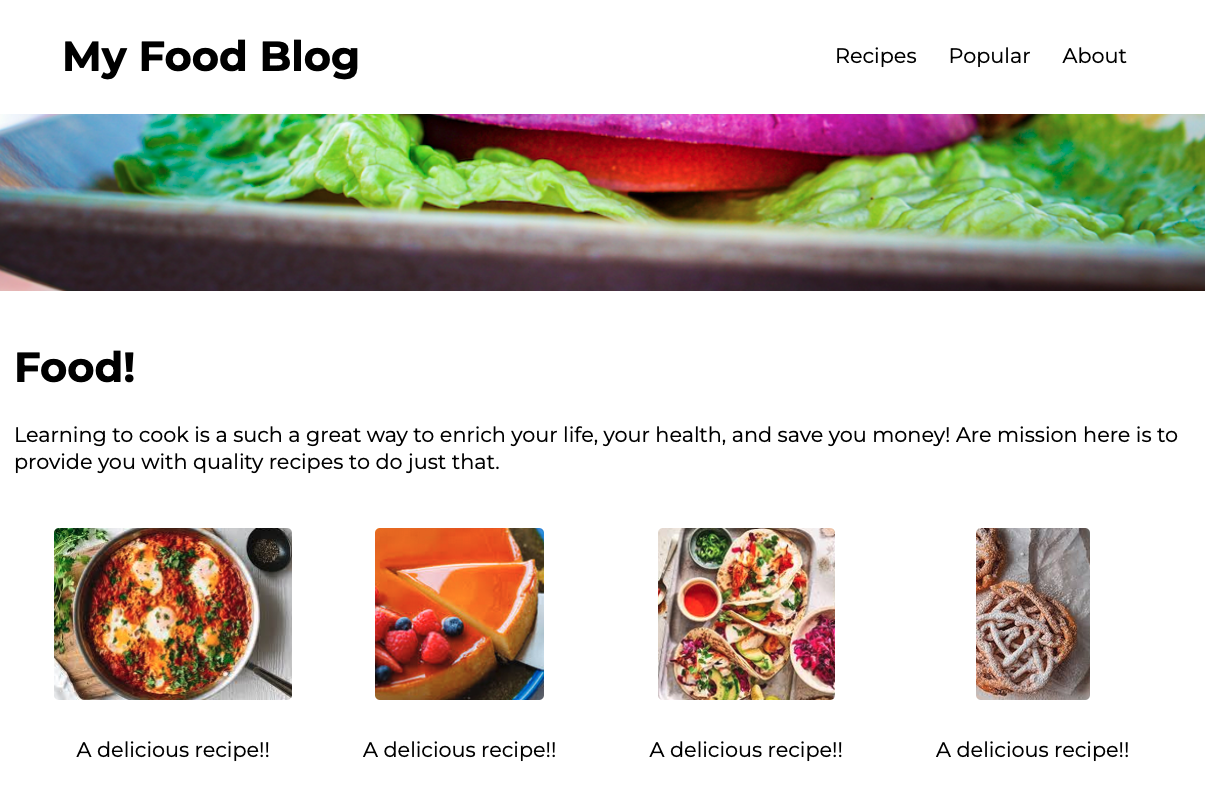Basic food blog landing page for showing your recipes off